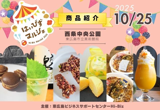 \はいびずマルシェ2025🎪新商品紹介②/「にじいろ商店」さま、「日本酒フレンドリー」さま、「量り売り商店紡~Tumugi~」さま、「パティスリーソンヌフ」さま、「東広島非公認キャラクターひがしひろし」さま、「フレスコサンドカフェ」さま -