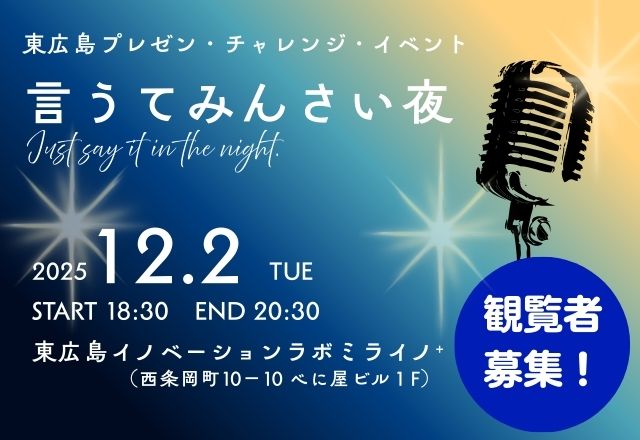 <📣東広島プレゼン・チャレンジ・イベント『言うてみんさい夜2025「冬」』登壇者決定❗>