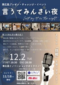 【東広島プレゼン・チャレンジ・イベント『言うてみんさい夜2025「冬」』】を開催します📣