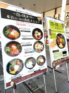 これを受け、関連事業者の皆さまを巻き込んで広島県央商工会さまとともに「 広島へそ丼まつり 」を道の駅湖畔の里福富で初開催しました。