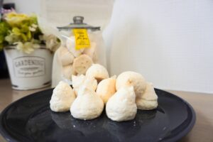 このメレンゲに使われる酒粕パウダーは、河内町の「ウェルド・アグリ」さまの製品です。